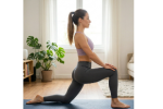 - 背筋を伸ばしたまま、ゆっくりと体重を前に移動させ、後ろに引いた脚の「付け根(前側)」を伸ばします。